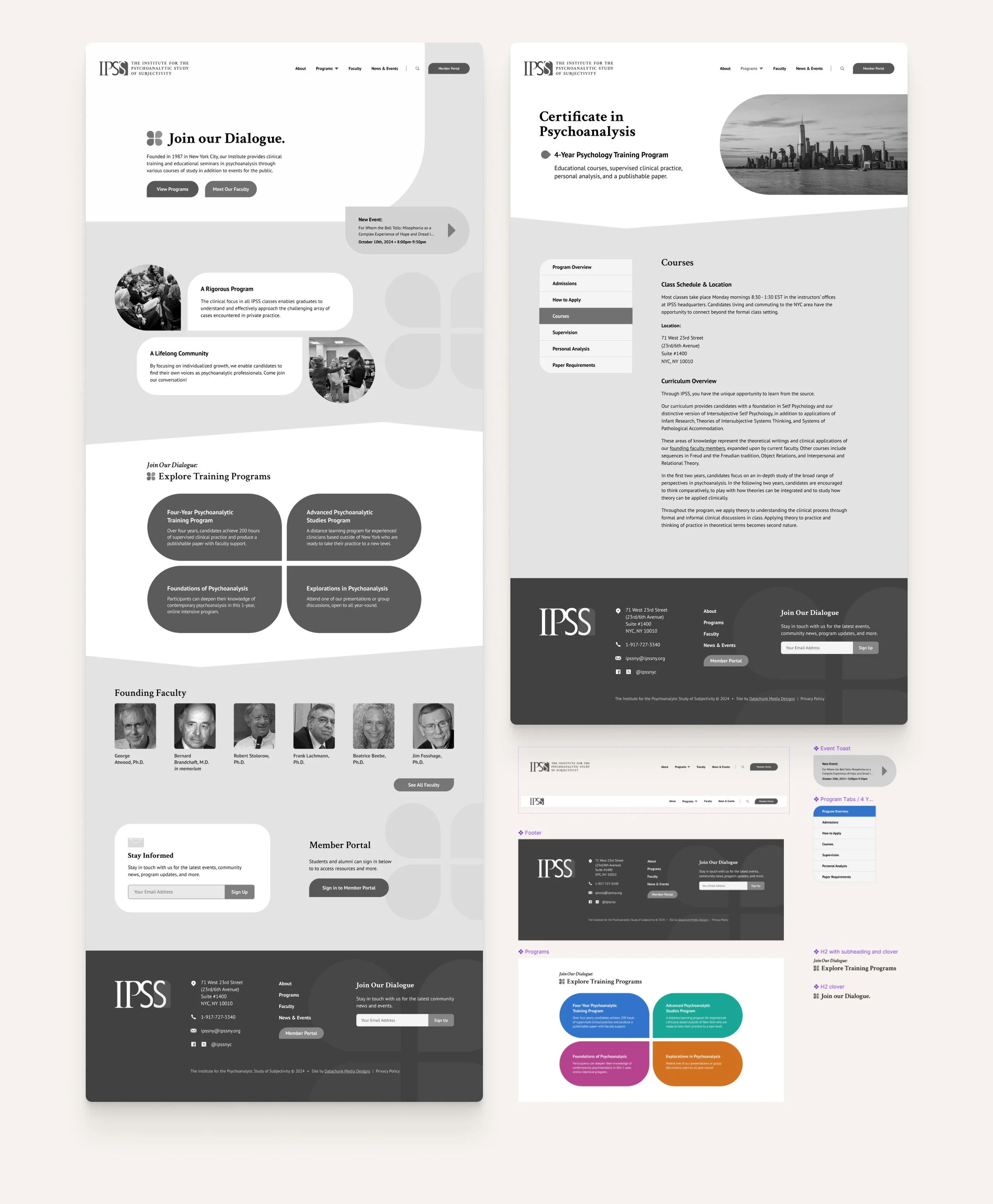 The IPSS’s previous website was easy to mistake for a psychology book review page. To help the IPSS better represent their educational programs to prospective students, I gave their brand a quick lift, redesigned their website with a modern and approachable UI, and edited their site content to have a consistent and professional voice.